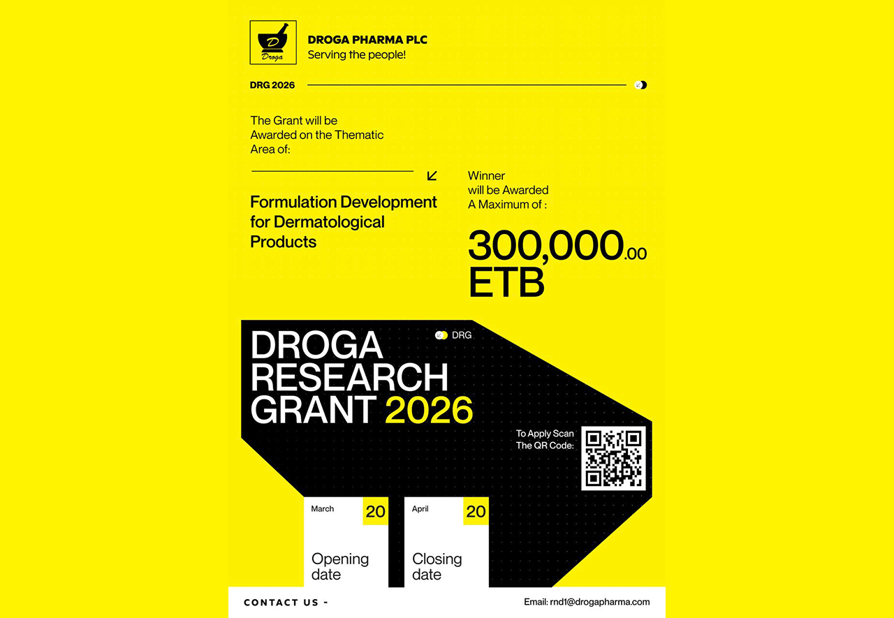 Droga Pharma PLC has awarded Dr. Eyoel Tesfaye (MD, Orthopedics and Trauma surgery Resident at St Paul’s Hospital